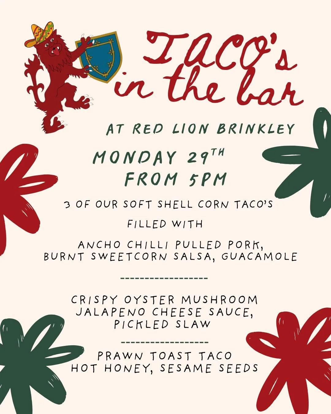 Tacos start at 5PM can be had in the